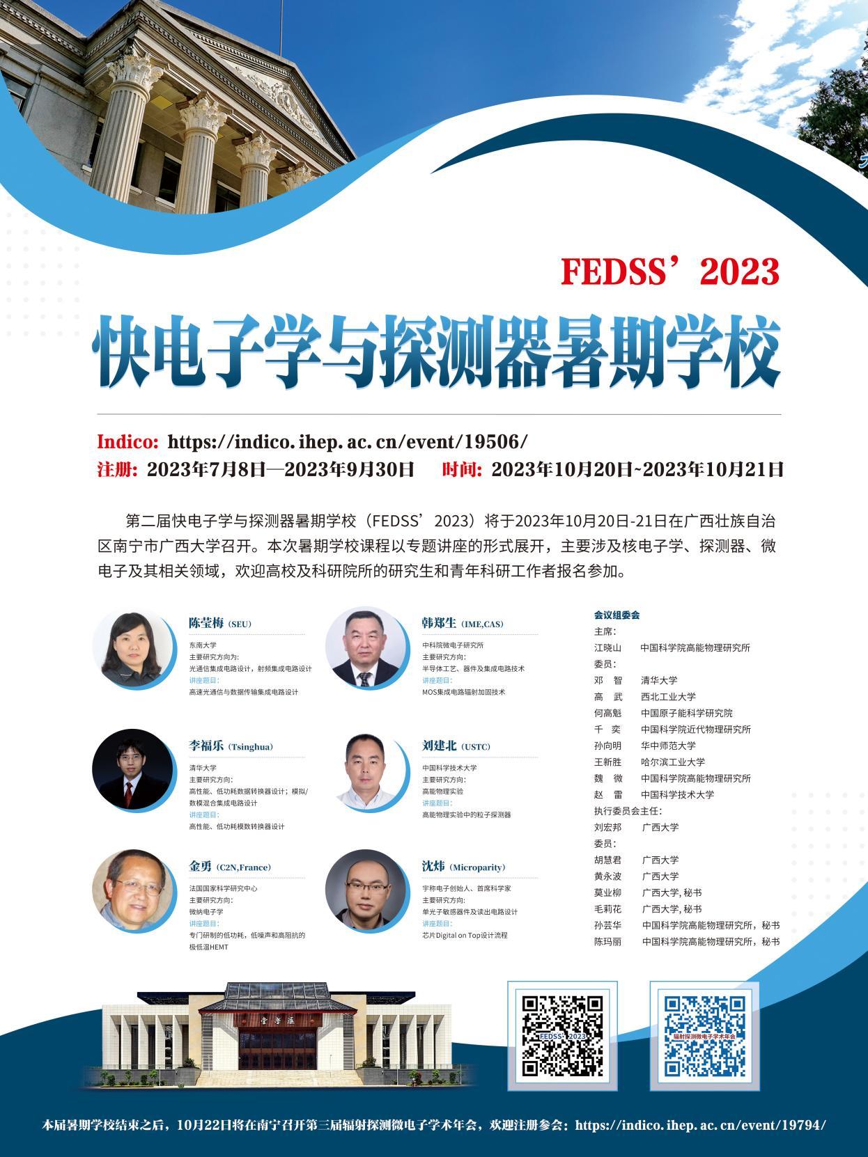 第二届快电子学与探测器暑期学校(FEDSS’2023)将于2023年10月20-21日在羞羞漫画