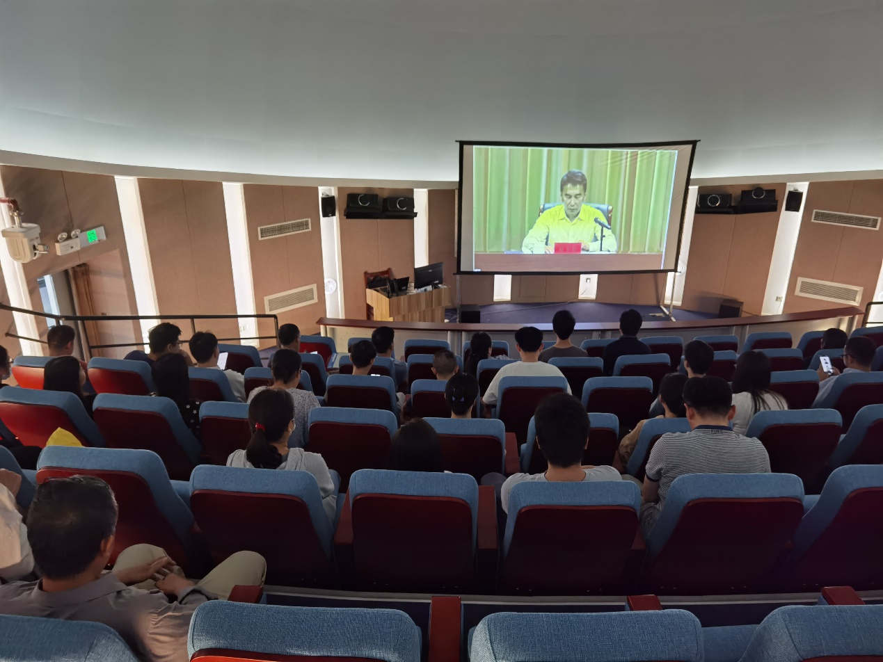 学习贯彻习近平新时代中国特色社会主义思想主题教育工作会议。学院领导、各党支部书记、专职辅导员、组织员在学校主会场参加会议。学院在九楼天象馆设立分会场,教职工、党支部委员在分会场通过网络收看直播。