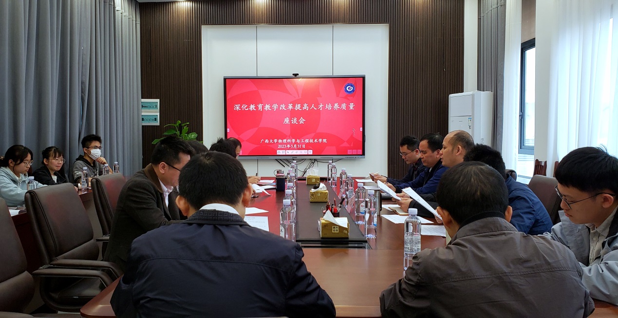在学院九楼天象厅会议室召开关于“深化教育教学改革 提高人才培养质量”座谈会。校友办副主任黄庶冰、各基层教学组织负责人、教师代表、学工组老师以及学生代表等30人参加本次座谈,会议由管永精副院长主持。