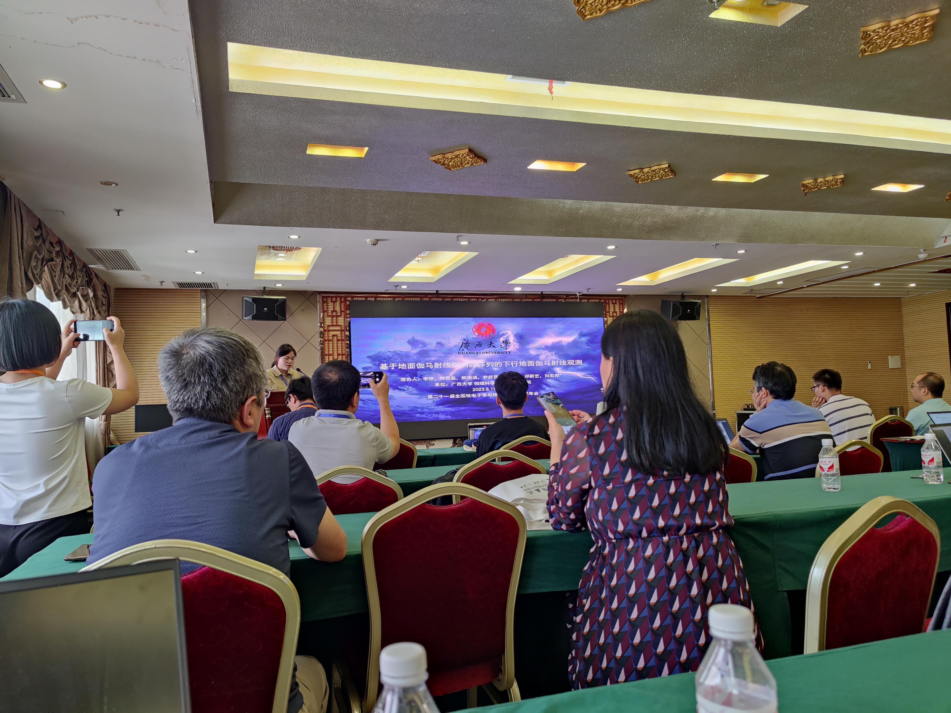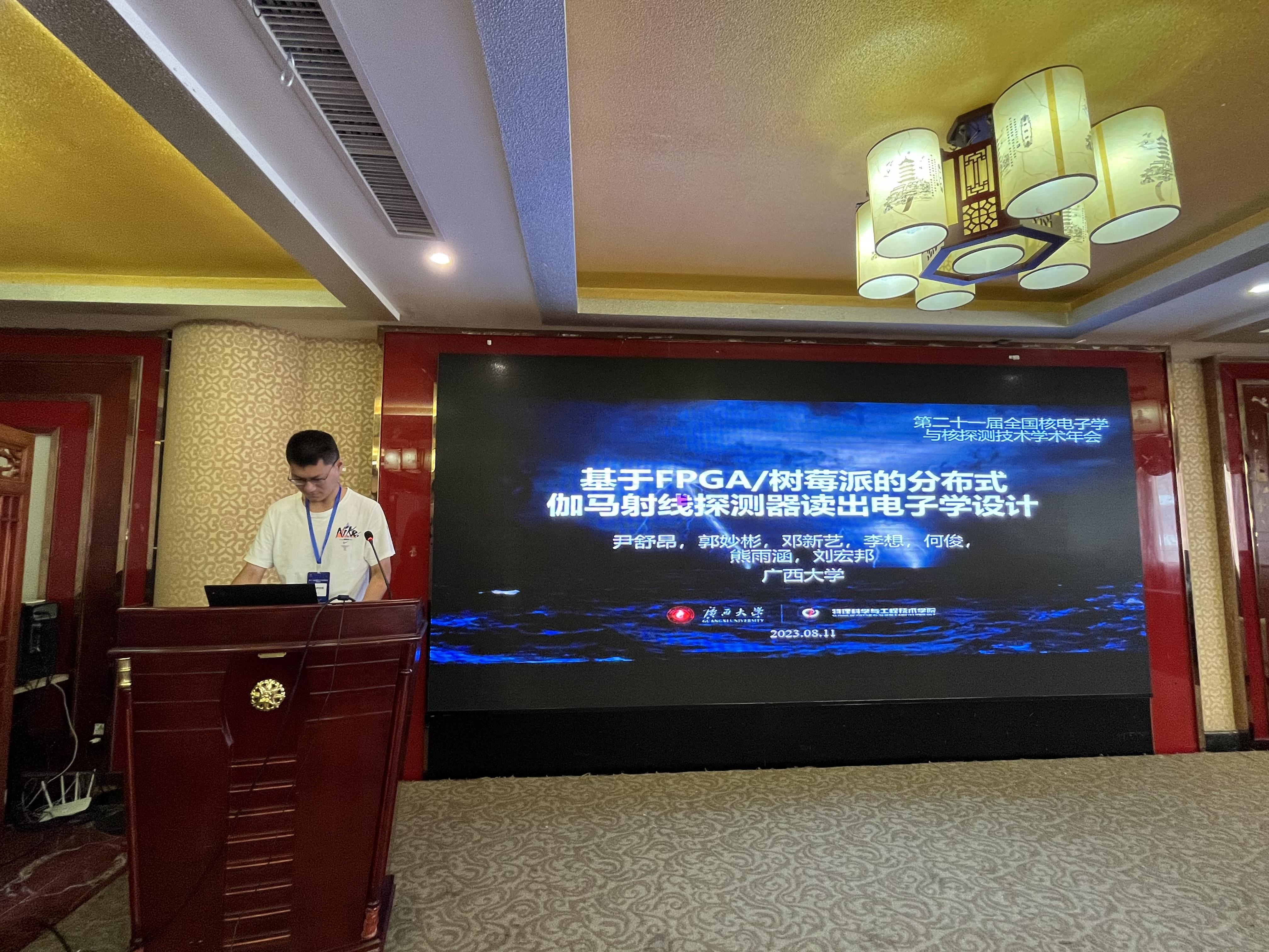 2020级本科生李想、尹舒昂参加会议并就所开展的大学生创新训练计划项目《地面伽马射线探测器阵列研究项目》研究进展作分会口头报告,指导老师为学院刘宏邦教授。