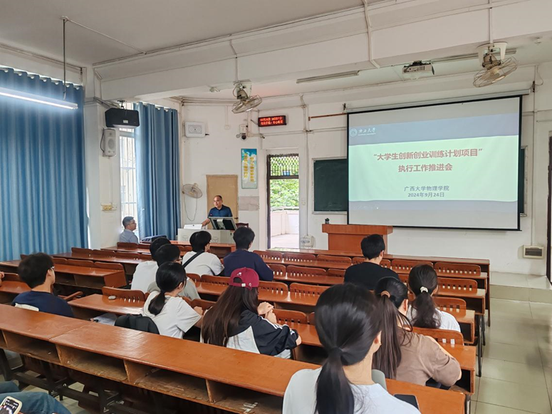 在西2-201教室召开了全体在研大创项目执行工作推进会,学院副院长陆翔、物理系副主任黄永波出席会议,电子系副主任曹盛主持会议。