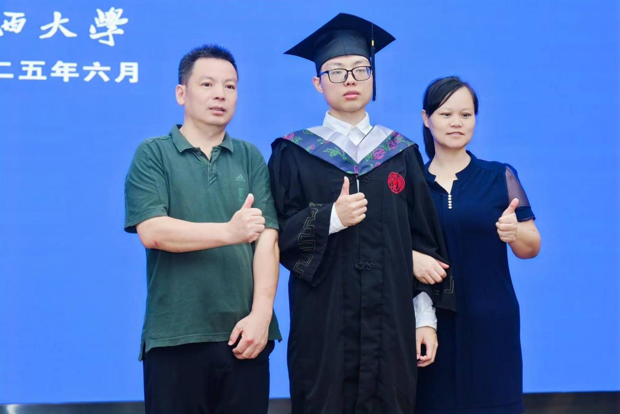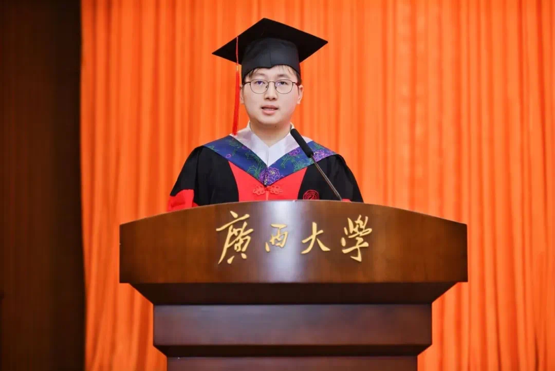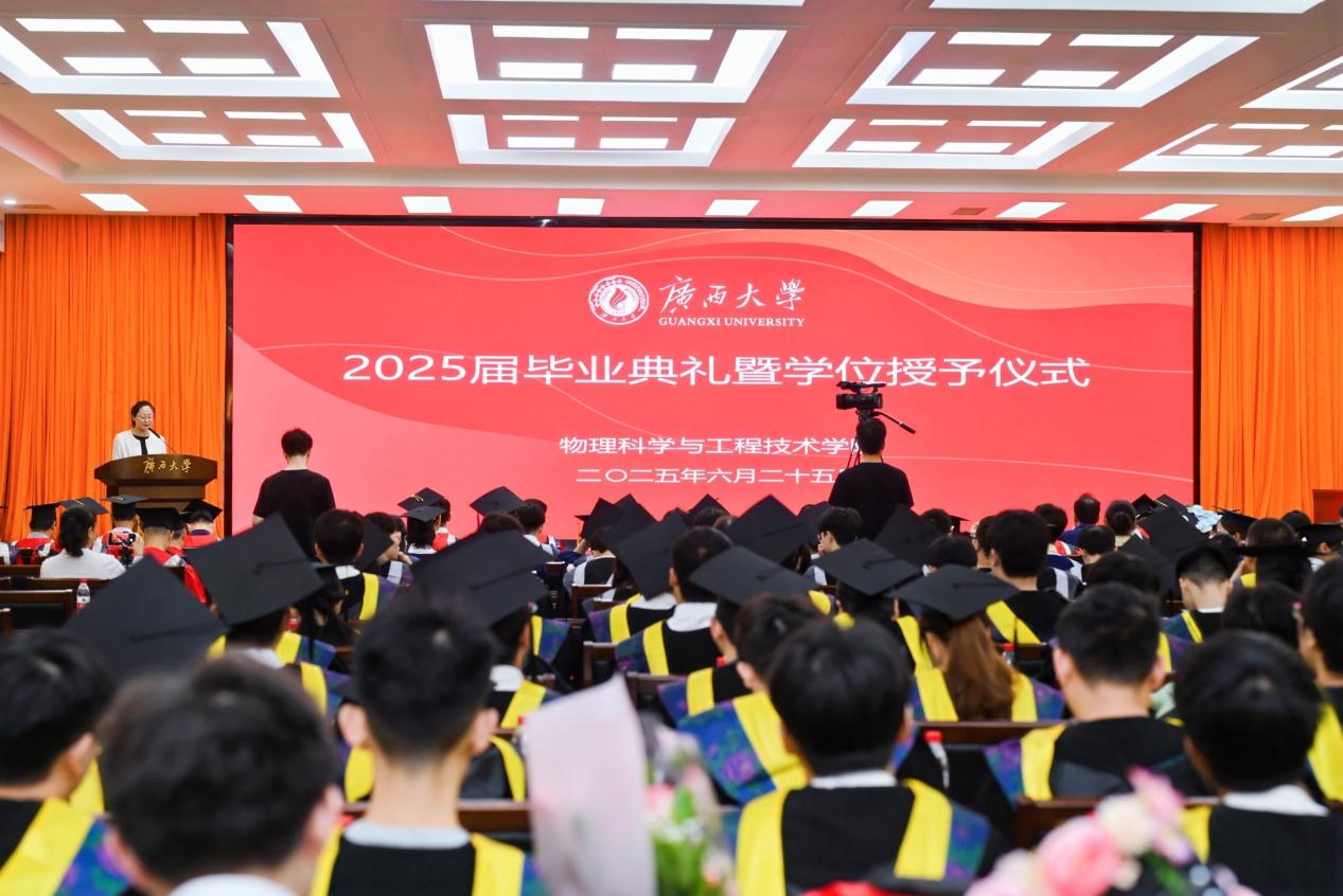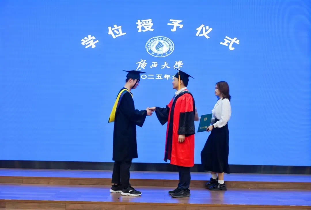 “复兴中华,发达广西”“努力,努力,大家一齐努力”……毕业典礼暨学位授予仪式在嘹亮的校歌声中落下帷幕。