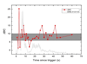 图1. GRB 211211A时间分辨光谱中2SBPL和2SBPL+BB模型之间的∆BIC