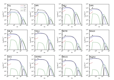 假设新生磁星的形变结构不是由单一机制引起的,而是由多个时变四极矩引起的,如磁致形变、星震致椭率和吸积柱导致的形变。研究发现,新生磁星由于其结构变形,可能会产生微弱的引力波辐射。磁星的演化与磁星的物理参数(周期和表面磁场)、绝热指数和极向磁能占总磁能的比例有关。一般来说,当磁星表面磁场较大时,磁致形变产生的引力波辐射占主导地位,而在其他磁星参数不变的情况下,当绝热指数较大时,磁星星震产生的引力波辐射更有效。他们还发现,引力波辐射对不同的磁星状态方程不是很敏感。