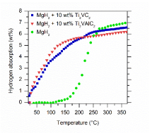 图1 添加Ti2VC2 MXene和Ti2VAlC2 MAX的MgH2的放氢曲线和吸氢曲线