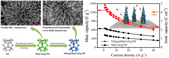 新能源材料团队黄海富等人开展了核壳型纳米阵列设计与储能性能的研究,研究成果以“Needle-like NiSχ@MnCoOχ core–shell nanoarrays with high charge storage performance for application in hybrid supercapacitors”为题发表在《Journal of Energy Storage》期刊上。