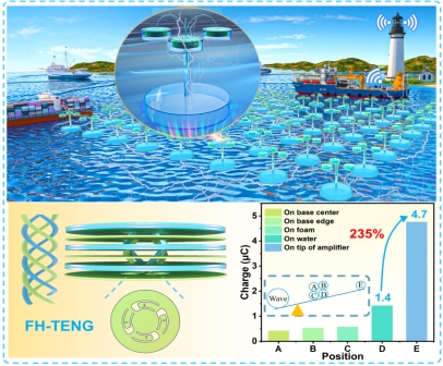 成果一:基于波浪振幅放大器的四螺旋结构摩擦纳米发电机