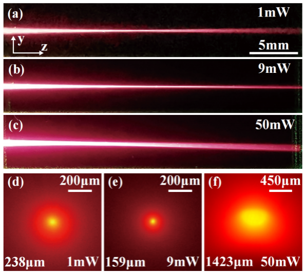 在复杂的液体环境中,光束的传输存在极强的散射效应,为解决这一难题传统做法是通过在溶液中添加米氏(Mie)粒子,通过光学梯度力和散射力调节粒子分布,从而抵消防止光束自捕获的散射效应。然而,由于米氏粒子的非线性响应较低,通常需要极高的光学功率形成光波导。对此,“在低功率激光的条件下是否也可在溶液中形成稳定的波导结构?”成为了关键问题。