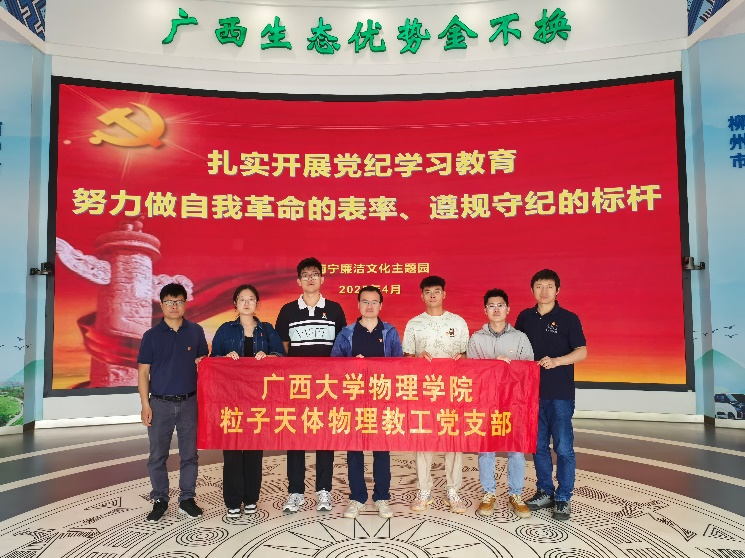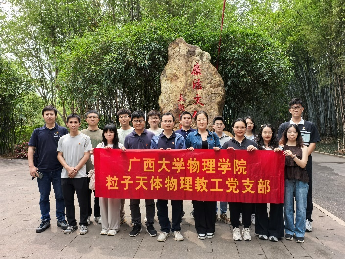 为传承红色基因,推进党风廉政建设,引导师生党员筑牢廉洁自律防线,4月26日,粒子天体物理教工党支部、博士生第二党支部到南宁市廉洁文化教育基地开展廉洁教育主题党日活动。